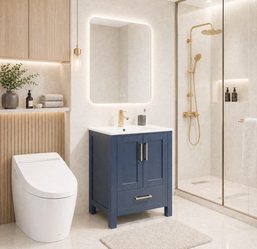 • ROSE- 24"x18" Navy Blue , Solid Wood Floor Standing Modern Bathroom Vanity - Construction Commodities Supply Inc.