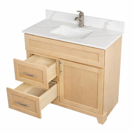 Original price $2,720.00Current price $1,780.00| /Classic- 36" Canadian Made Natural Oak Bathroom Vanity With Quartz Countertop/LEFT SIDE DRAWERS