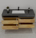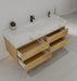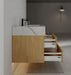 Elevate your modern bathroom with this wall-mounted single sink vanity, combining sleek Natural Oak fluted woodgrain cabinetry with a seamless sintered stone countertop. The ultra-smooth basin features integrated double sinks with a distinct sloped design for added elegance. Perfect for shared spaces, this piece blends high-end style with practical storage.
