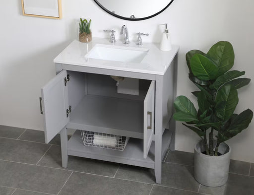 $933.37| /CCS11- 30" White Cabinet , Grey / White Quartz Countertop, Floor Standing Bathroom Vanity