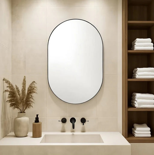Details: Metal Frame in Black Elongated Oval Mirror Hangs both vertically & horizontally Hanging Hardware included Dimensions: Overall: 24″...
