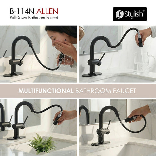 ALEEN- B114N Pull Down Bathroom Faucet Single Handle Matte Black .
