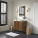 - Warm walnut finish vanity with brushed gold hardware included,