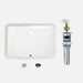 Elegant, high-gloss rectangular sink crafted from durable, non-porous white porcelain with a baked-on glaze for effortless cleaning. Slim profile maximizes vanity space.Designed for undermount installation in cabinets 22″ and wider. Fits a 1¾″ drain and includes Pop-up Drain D-701H plus two overflow rings in Polished Chrome and Matte Black. cUPC-certified and backed by a limited lifetime warranty.