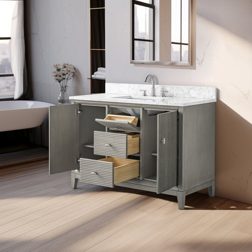 Original price $2,970.00Current price $1,750.00| /V-ART , 48" x 22" Drift Wood Grey Freestanding Bathroom Vanity with Marble Top