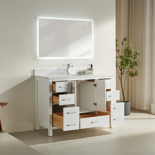 Original price $1,732.50Current price $1,488.69| /AD48" Single Sink, High Gloss White, Quartz Countertop, Floor Standing