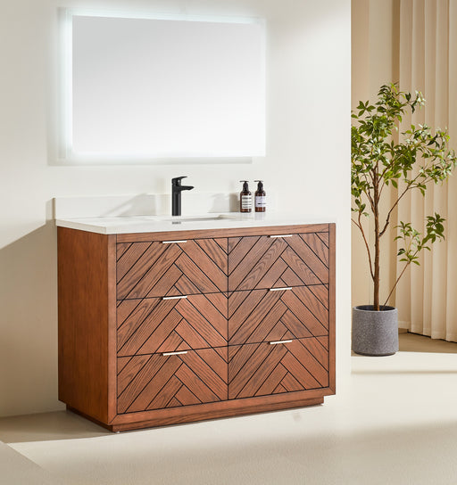 Original price $2,970.00Current price $1,750.00| /V-ART , 48" x 22" Natural Oak Freestanding Bathroom Vanity with Marble Top
