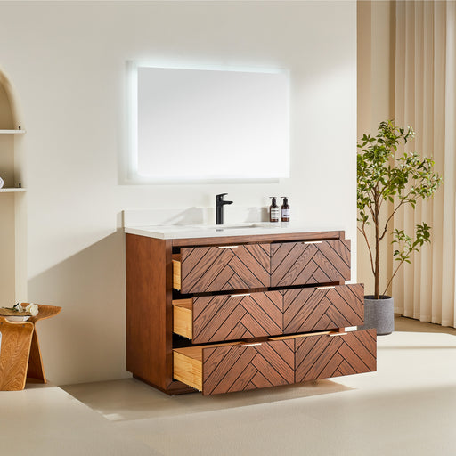$3,398.00| /Tulip - 48" Walnut , Solid Wood Floor Standing Modern Bathroom Vanity, Quartz Countertop