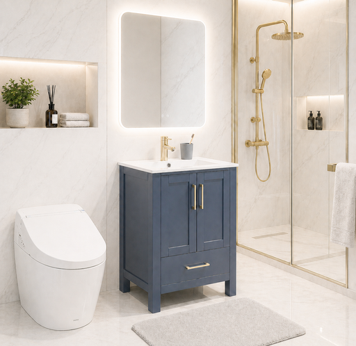 • ROSE- 24"x18" Navy Blue , Solid Wood Floor Standing Modern Bathroom Vanity - Construction Commodities Supply Inc.