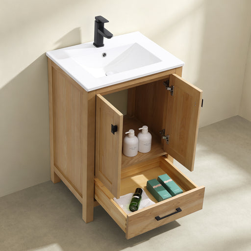 Rose- 24" x 18" Golden Oak , Solid Wood Floor Standing Modern Bathroom Vanity - Construction Commodities Supply Inc.